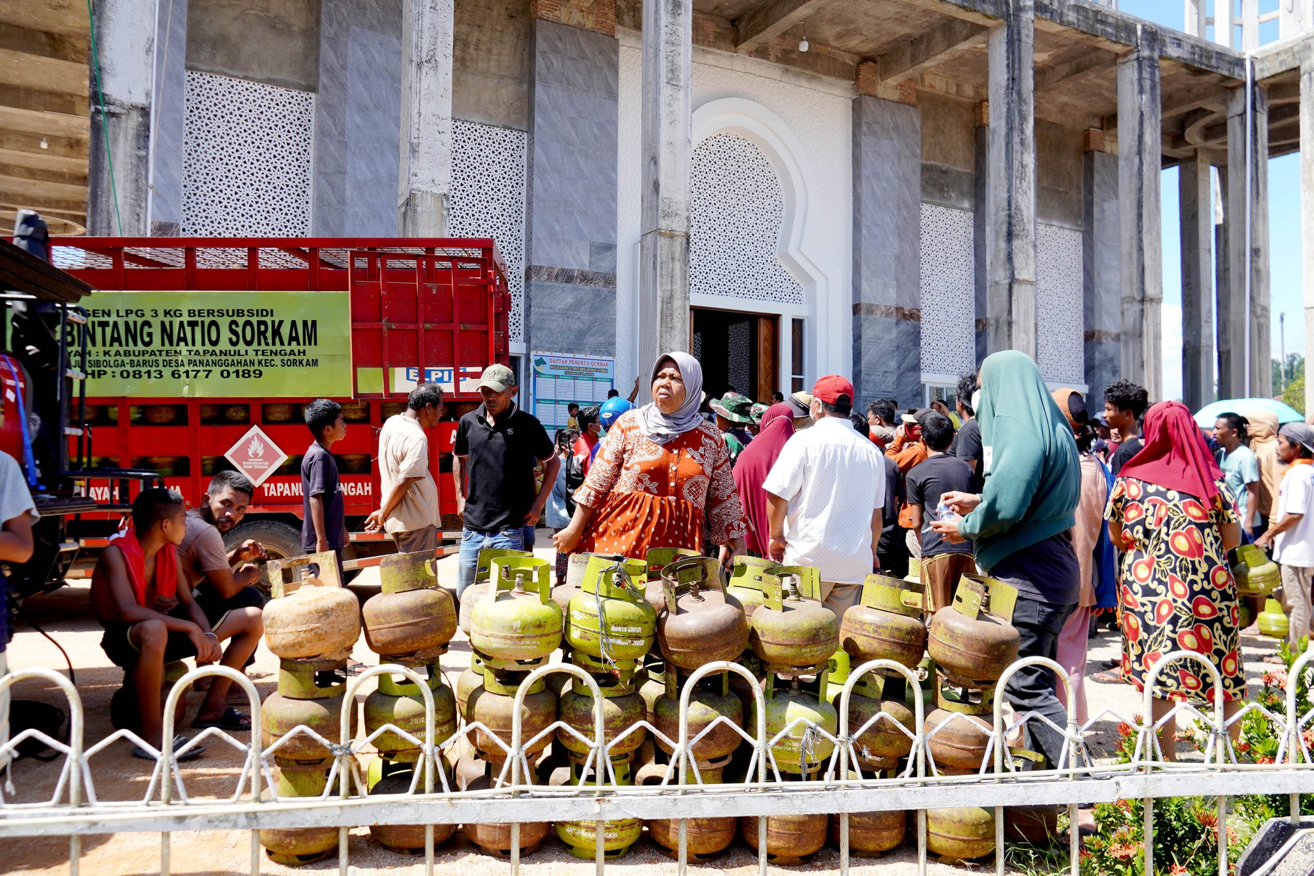 “Melihat antusias warga tadi jadi kami membagikannya di sini, untuk harga Rp 19.000, sesuai HET (harga eceran tertinggi),” kata Checker Elpigi, Ridwan Soleh S di Masjid Agung Al Muslimin Tapteng.