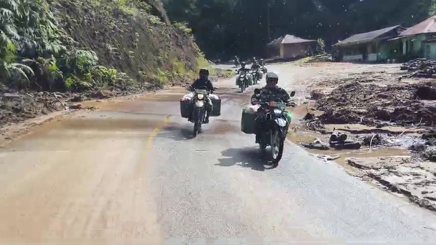 Pendistribusian bantuan dilakukan dengan menggunakan 13 unit kendaraan dinas berupa sepeda motor trail berkeranjang (along-along). Rombongan Babinsa berangkat dari Makodim 0210/TU menuju Desa Sibalanga dengan membawa sebanyak 100 paket logistik yang telah disiapkan untuk disalurkan kepada warga terdampak.