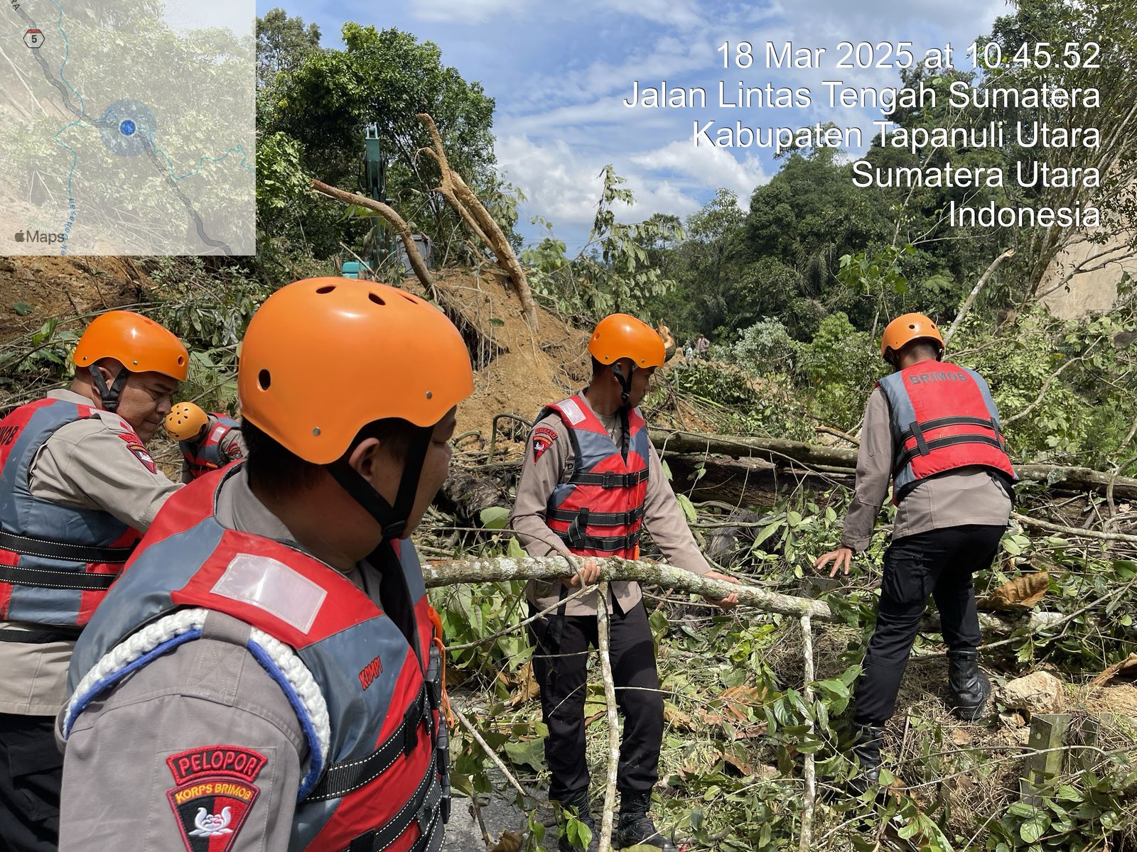 “Proses evakuasi dan pembersihan material longsor dilakukan secara gotong royong antara personel Brimob dan masyarakat setempat. Material tanah, batu, serta pohon tumbang yang menutupi jalan berusaha disingkirkan untuk membuka kembali akses transportasi,” kata Komandan Kompi 1 Batalyon C Satuan Brimob Polda Sumut, AKP Marihot Sitorus, Selasa (18/03).