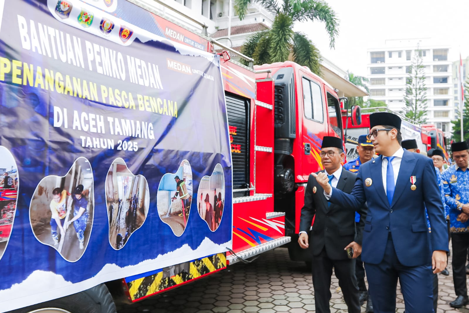 Wandro Malau yang memimpin langsung keberangkatan armada dan peralatan itu mengatakan, sebelumnya sudah ada tiga unit armada yang dikirimkan untuk membantu pembersihan fasilitas umum di Kabupaten Aceh Tamiang. Kemudian, jelas Malau, hari ini, Jumat (19/12) Pemko Medan mengirim dua unit armada tambahan lagi.