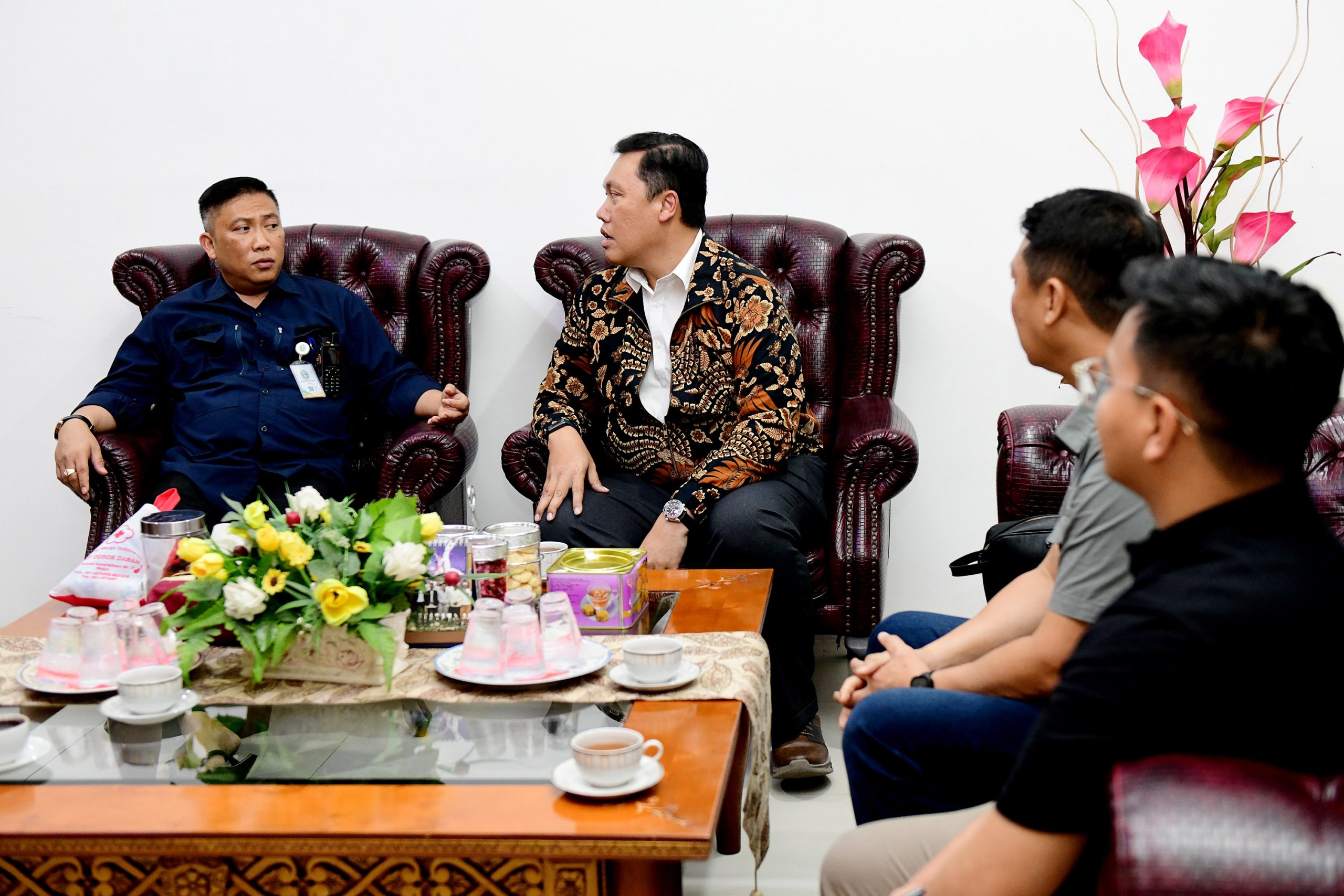 Kepala Diskominfo Sumut, Erwin Hotmansah Harahap (dua dari kiri) saat menerima  audiensi Kepala Kantor Perwakilan LPS I Medan, Jimmy Ardianto, di Kantor Diskominfo Sumut.(Satunusantara news/HO-Diskominfo Sumut