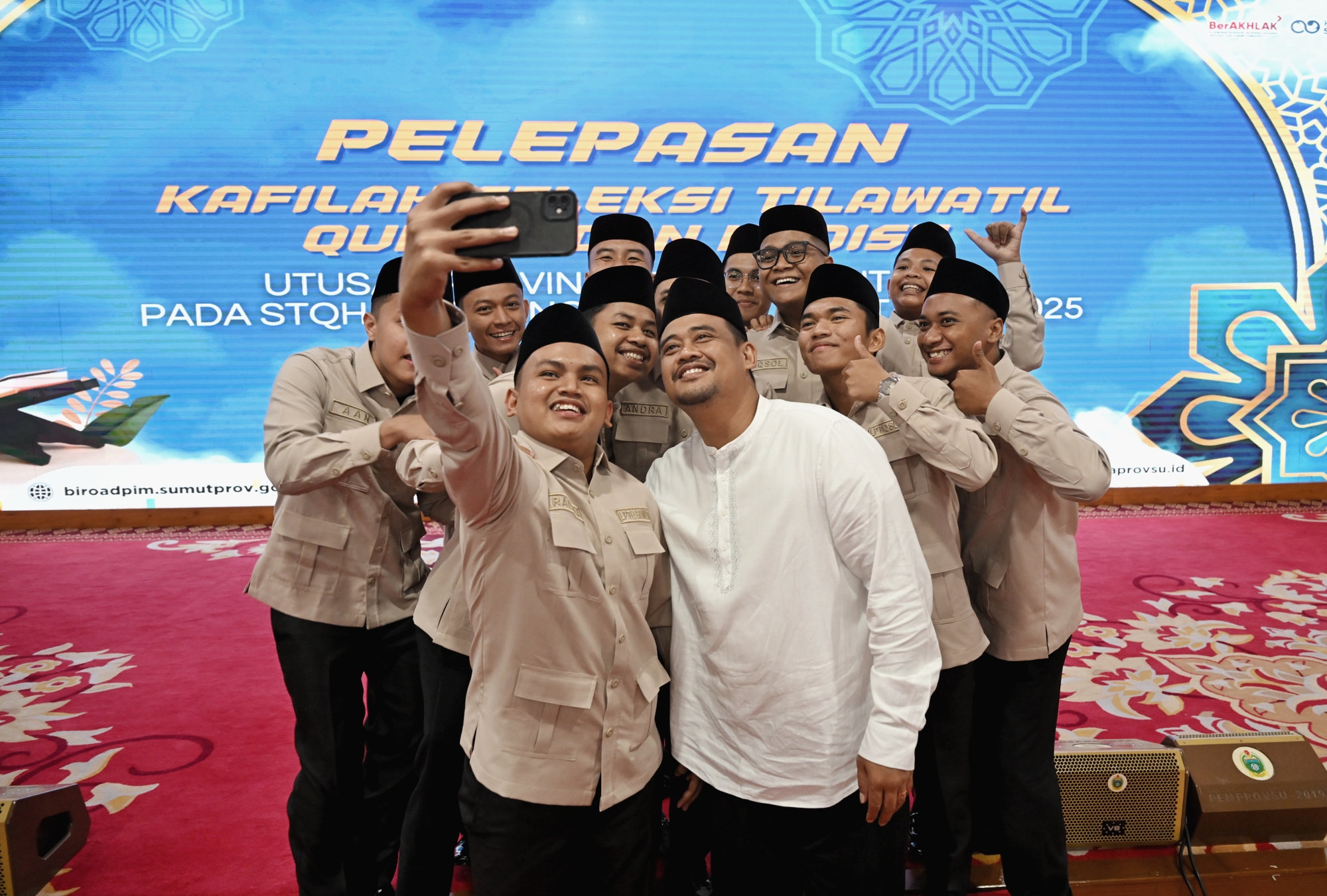 Medan (Satu Nusantara News) – Gubernur Sumatera Utara Bobby Nasution melepas keberangkatan Kafilah Sumut, untuk mengikuti pertandingan pada Seleksi Tilawatil Qur’an dan Hadits (STQH) ke-28 tingkat nasional di Kendari, Sulawesi Tenggara.