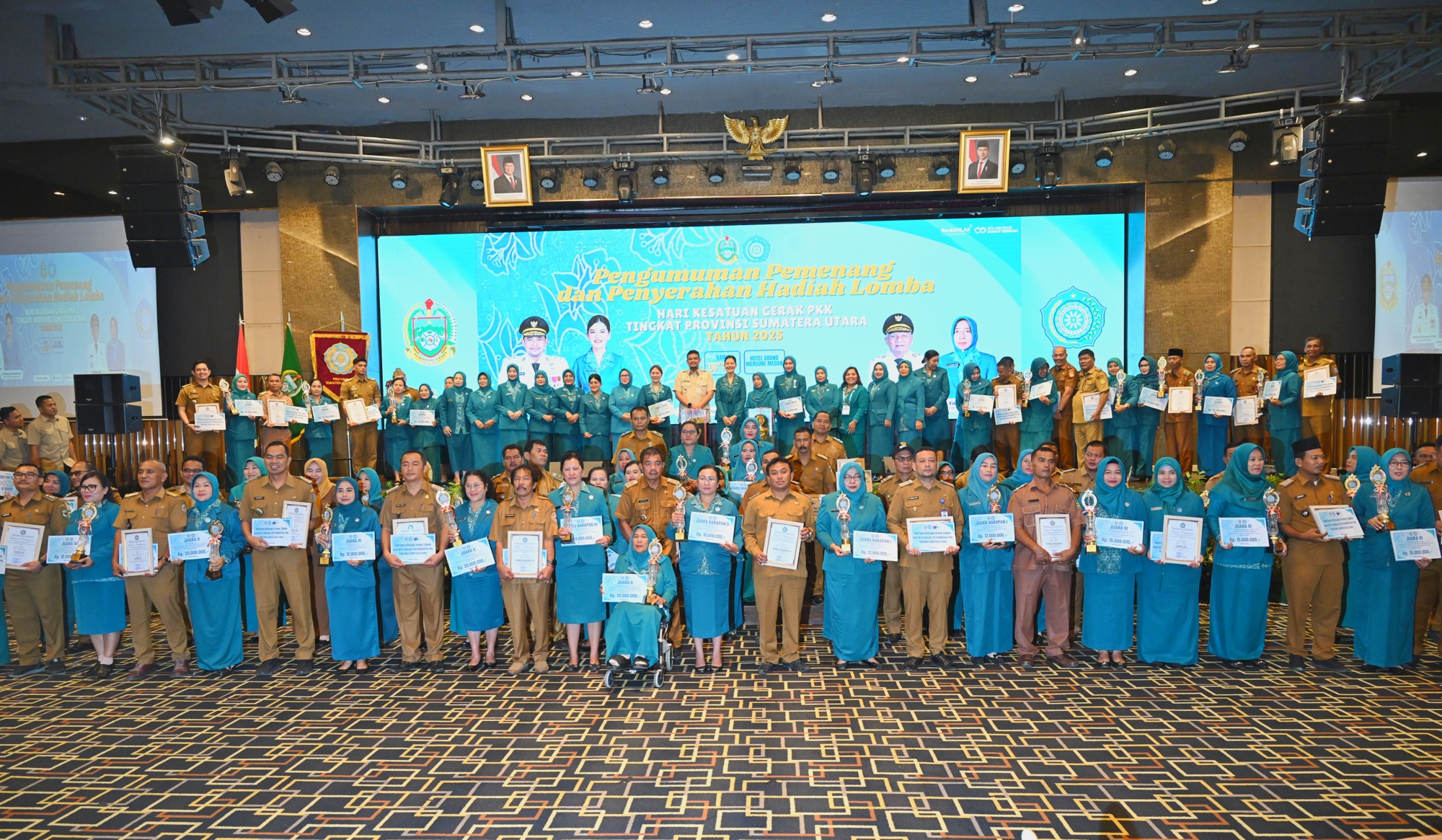 “Dari lima kategori yang dilombakan, saya titip kepada pengurus PKK Provinsi hingga Kabupaten/Kota se-Sumut agar terus meningkatkan pola asuh anak dan remaja, serta pemberdayaan ekonomi keluarga,” kata Bobby Nasution pada penutupan dan penyerahan hadiah Hari Kesatuan Gerak (HKG) PKK Tingkat Provinsi Sumut Tahun 2025, di Ballroom Hotel Grand Mercure, Medan, Kamis (6/11).
