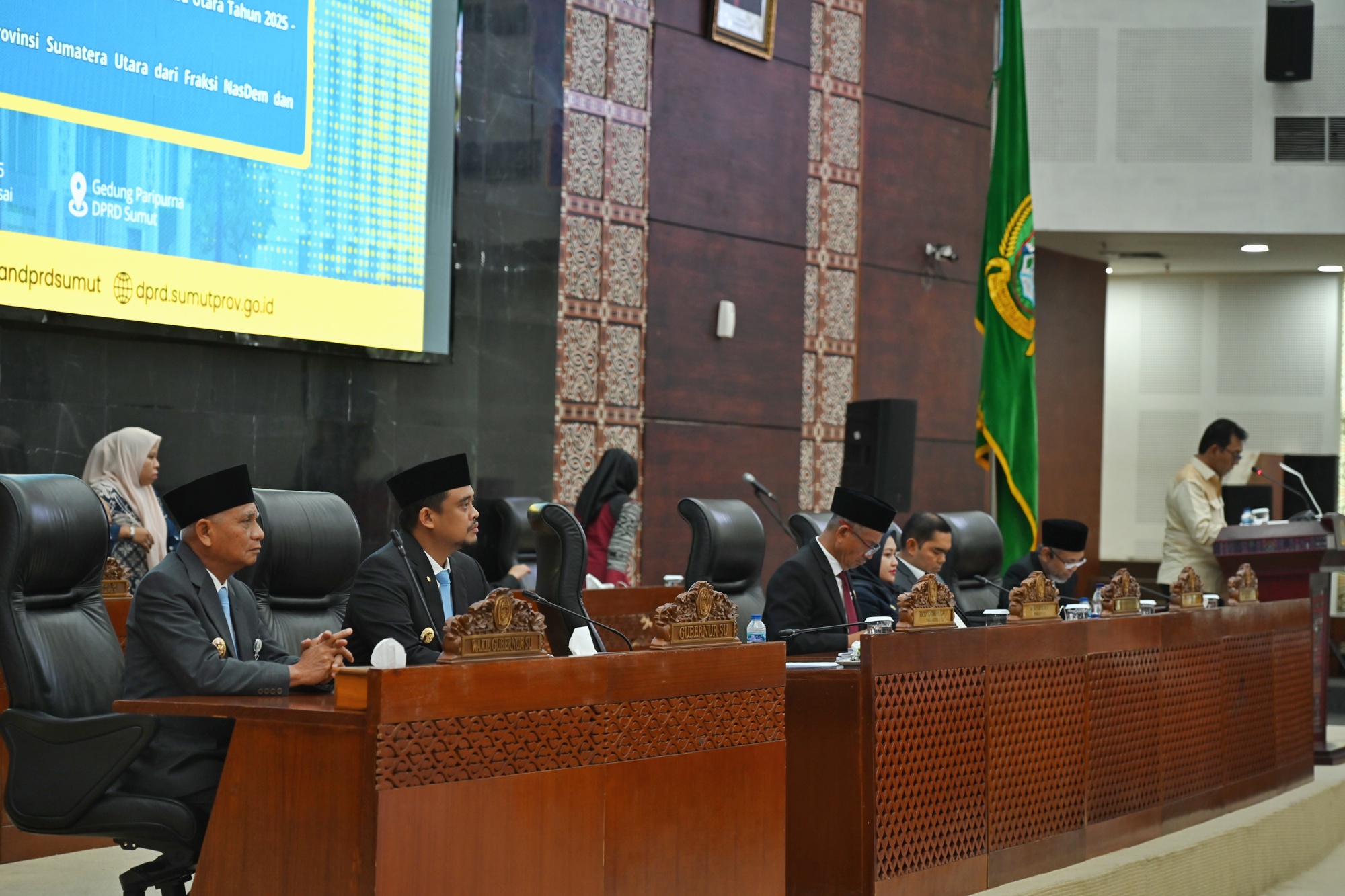 “Kami mengapresiasi kepada para Pimpinan dan segenap Anggota DPRD yang terhormat, atas rekomendasi yang telah disampaikan hari ini dan tentunya menjadi masukan yang strategis bagi kami dalam menjalankan tata kelola pemerintahan dalam pelaksanaan pembangunan daerah di tahun-tahun yang mendatang,” ujar Bobby, dalam rapat yang dipimpin Ketua DPRD Sumut Erni Ariyanti dan seluruh Wakil Ketua Dewan.