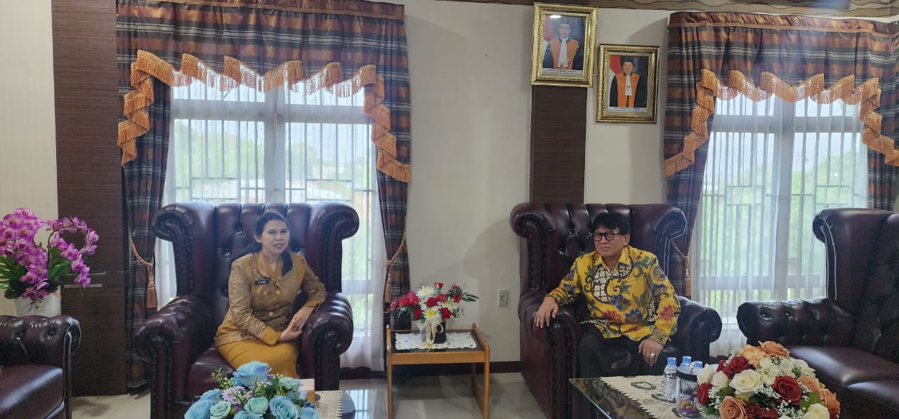 Kakanwil  Kementerian HAM Sumut, Flora Nainggolan (kiri) saat melakukan audiensi dengan Ketua Pengadilan Tinggi Medan, Siswamdriyono, di Pengadilan Tinggi Medan.(Satunusantara news/HO-Kanwil Kementerian HAM Sumut).