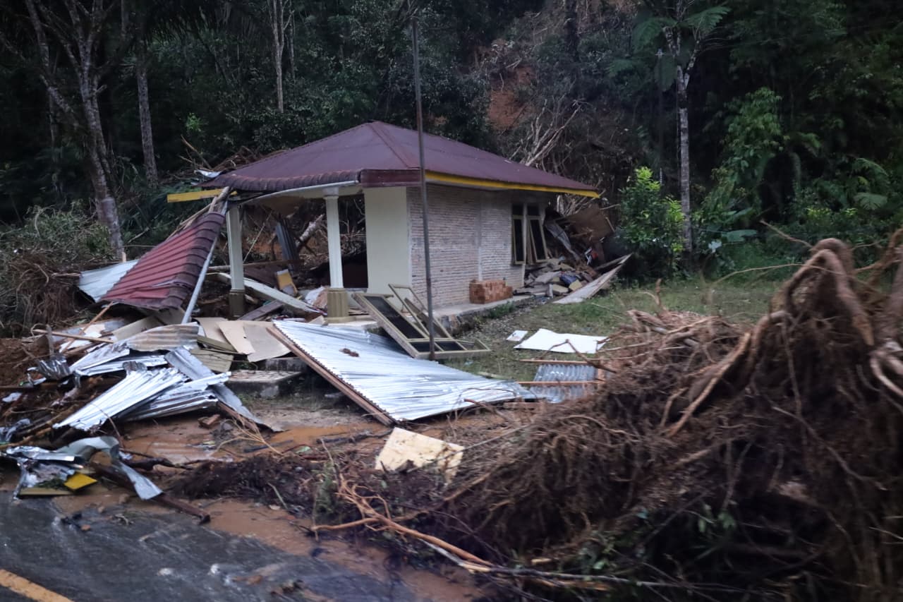 Rumah warga yang hancur akibat tertimbun tanah longsor di daerah terisolir Desa Sabalanga, Kecamatan Adian Koting, Kabupaten Taput.(Satunusantara news/HO-Pendam I/BB).
