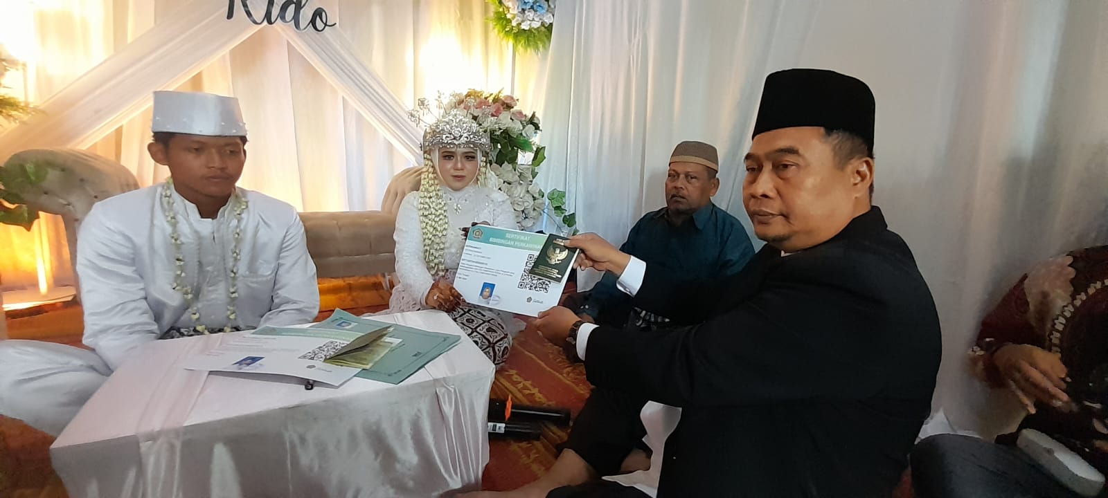 Setelah selesai ijab qobul, Kepala KUA Hamparan Perak, Nisman, memberikan nasihat kepada pengantin, yang menekan agar pengantin merawat pernikahanny dengan cinta dan kasih sayang.