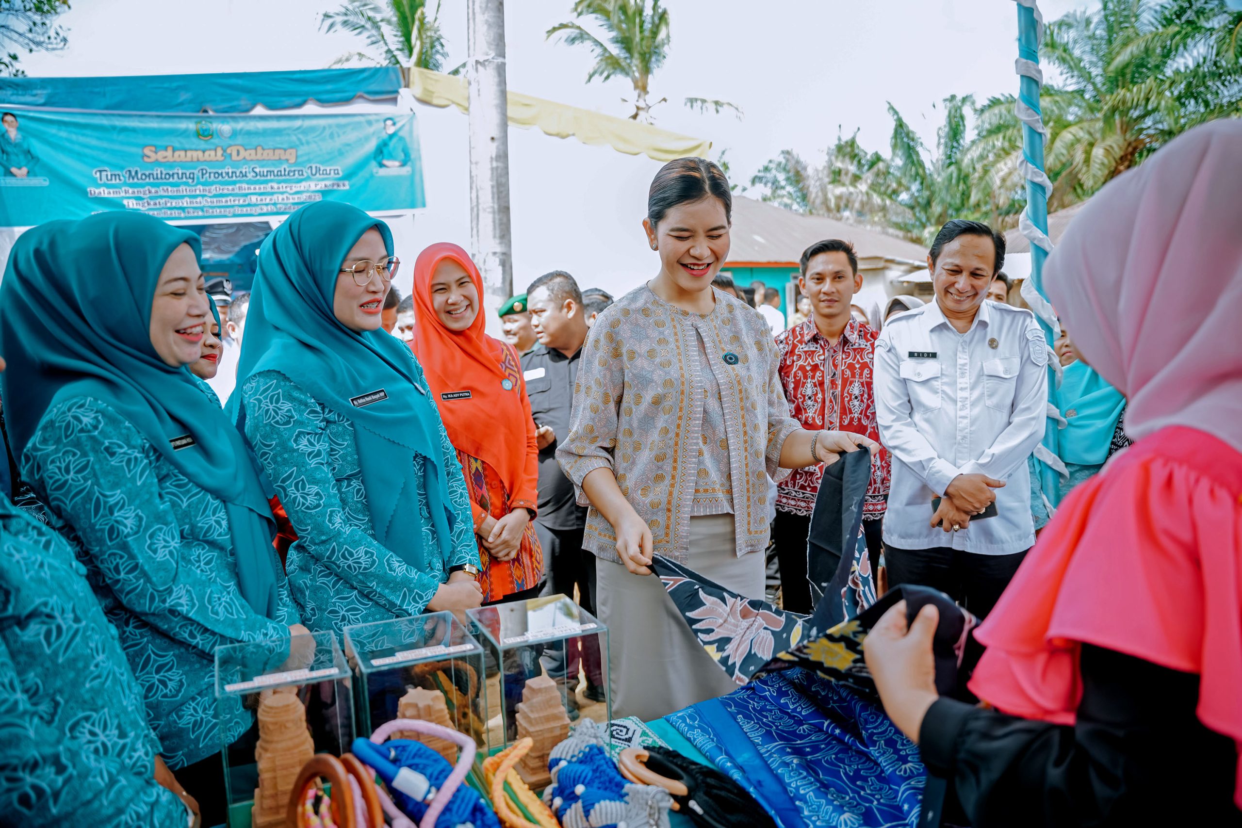Ketua TP PKK Sumatera Utara Kahiyang Ayu (tengah) saat monitoring pelaksanaan program PAAR di Desa Bahal, Kecamatan Portibi, Paluta.(Satunusanatara news/HO-Diskominfo Sumut).