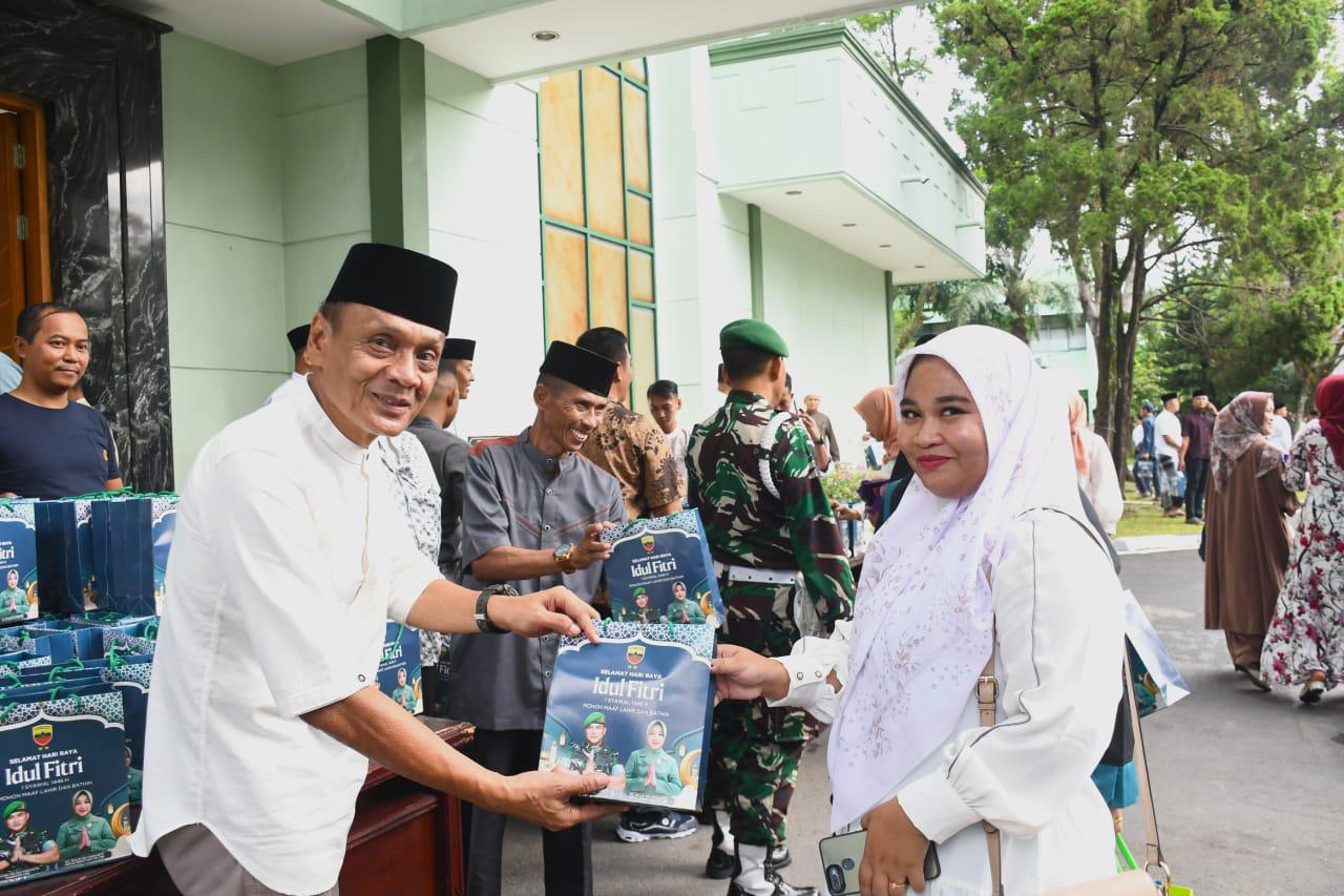 Sebelumnya, Kodam I/BB menggelar Shalat Idulfitri 1446 Hijriah di lapangan hitam Makodam I/BB, yang diikuti oleh Pangdam I/BB Mayjen TNI Rio Firdianto, bersama Ketua Percit KCK Daerah I/BB Ny.Galuh Rio Firdianto.