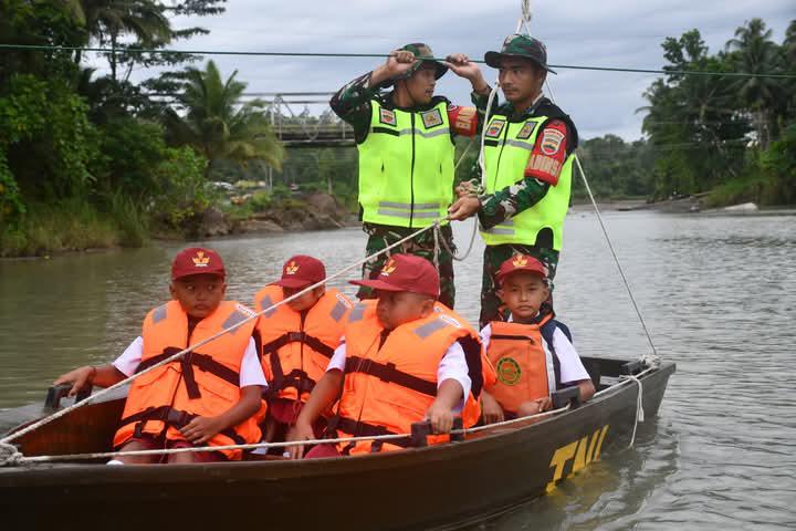 Danrem 023/KS menjelaskan, melalui program Babinsa Sahabat Anak, personel TNI menyediakan perahu penyeberangan gratis yang aman bagi pelajar dan masyarakat umum. Kegiatan ini dilakukan secara rutin setiap hari guna memastikan akses warga tetap terbuka selama belum ada jembatan pengganti.