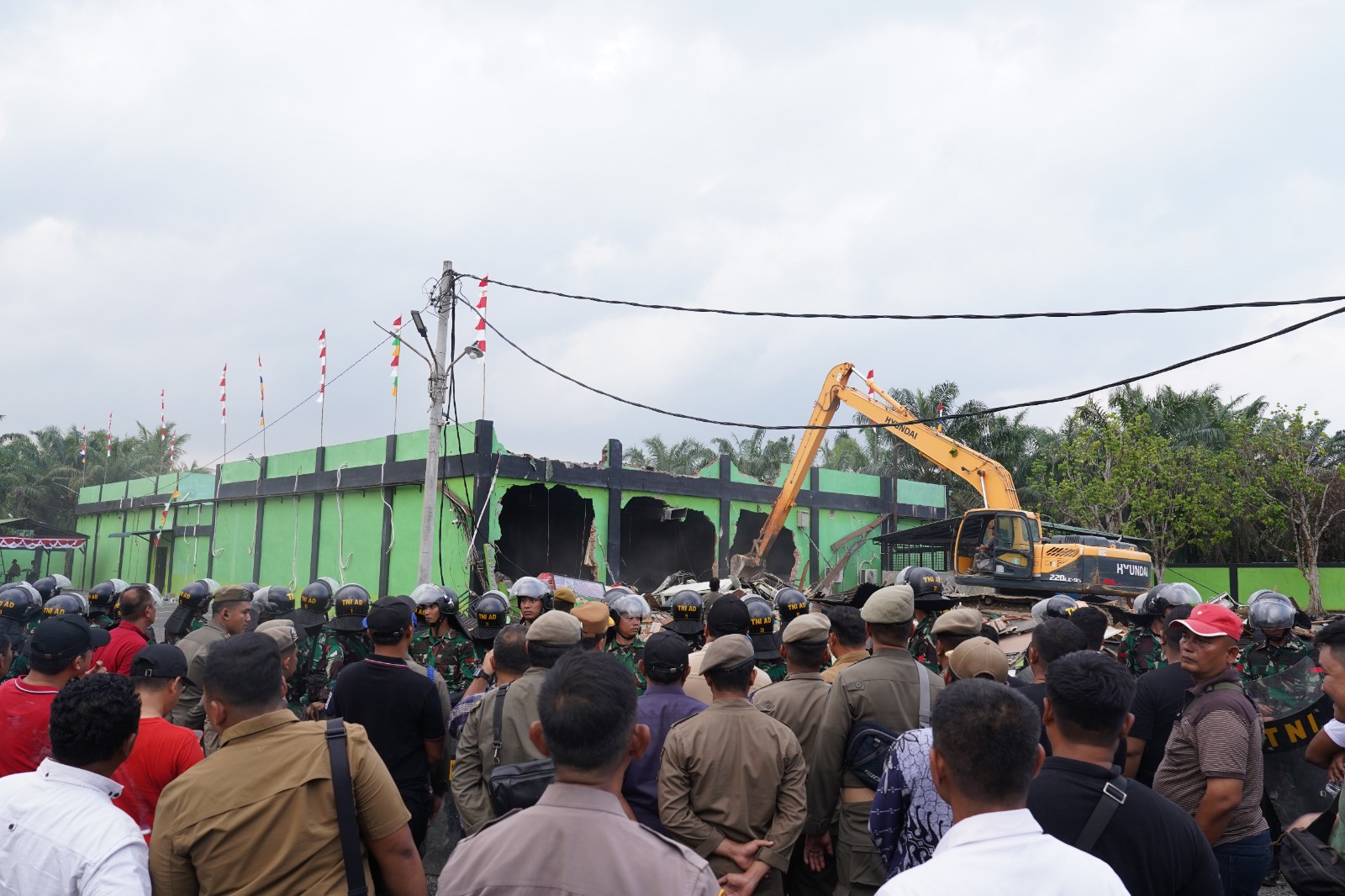 Tiga unit alat berat dikerahkan untuk merobohkan bangunan utama CDI dan sejumlah fasilitas bangunan di sekitarnya. Proses pembongkaran berlangsung dengan pengamanan ketat aparat gabungan, disaksikan warga yang memadati lokasi.