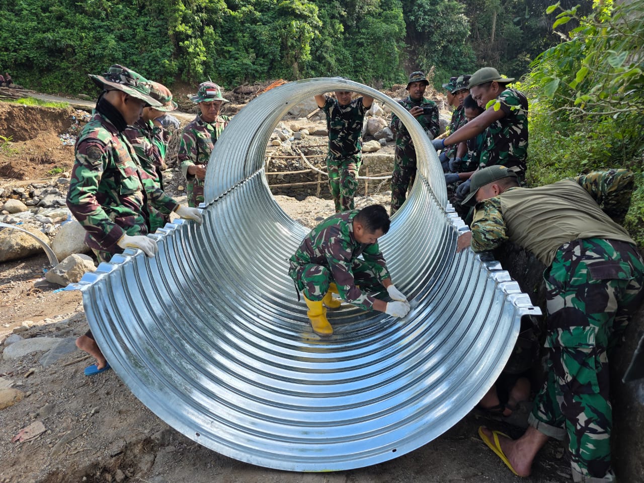 Dalam pelaksanaannya, satu unit alat berat jenis eksavator dikerahkan di lokasi, milik Pemerintah Kota Padangsidimpuan, serta didukung personel dari Zidam l/BB, Yonzipur 1/ DD, dan Kodim 0212/Tapanuli Selatan.
