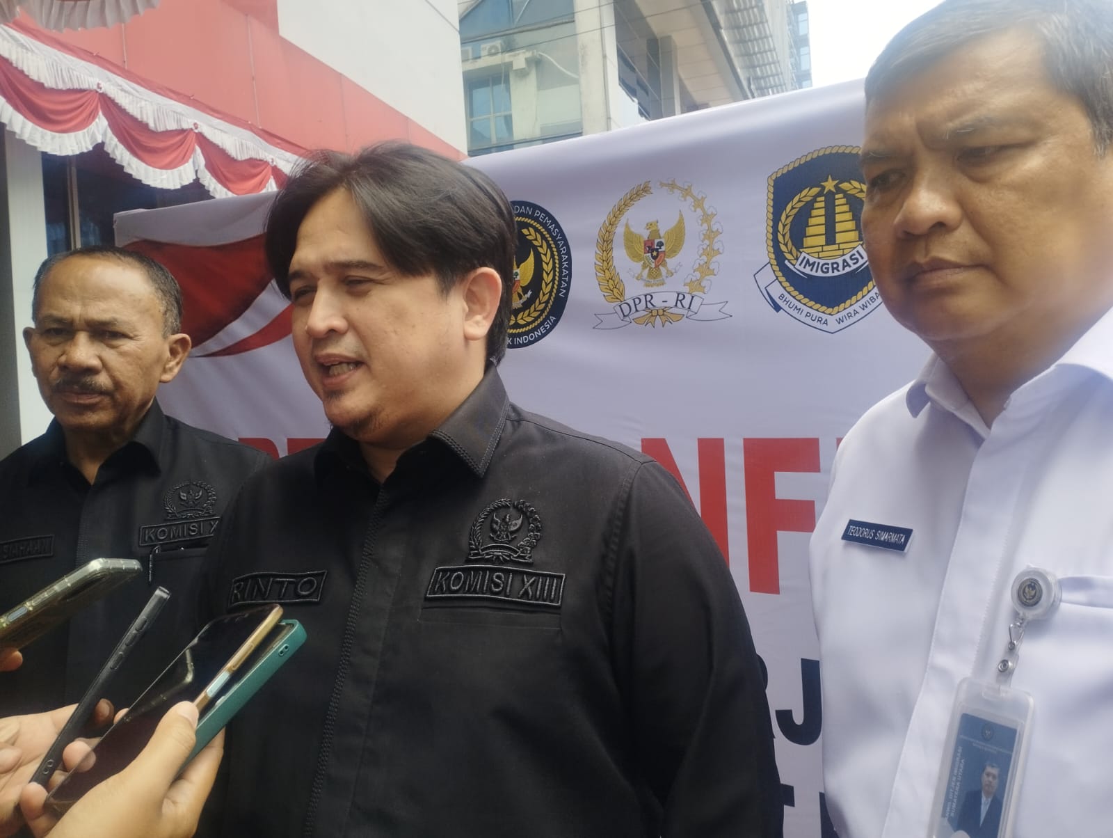 Wakil Ketua Komisi XIII DPR RI Rinto Subekti, menjawab wartawan, usai melakukan kunjungan kerja spesifik ke kantor Wilayah Ditjend Imigrasi Sumut.(Satunusantara news/Munawar)