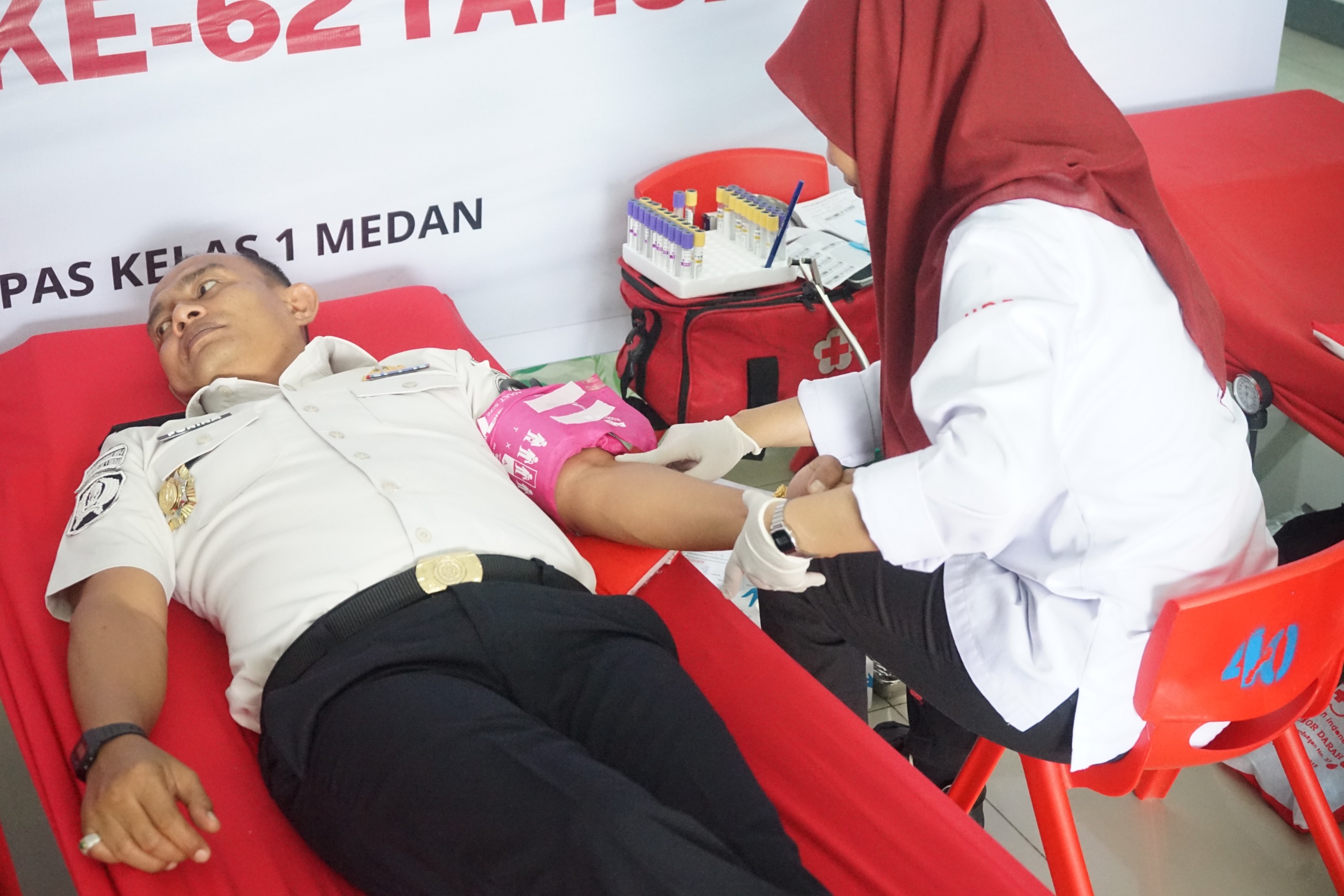 Medan (Satu Nusantara News) – Lembaga Pemasyarakatan (Lapas) Kelas I Medan menggelar kegiatan donor darah dan pemeriksaan kesehatan bagi seluruh Aparatur Sipil Negara (ASN) sebagai bentuk kepedulian sosial dan upaya menjaga kesehatan bersama,