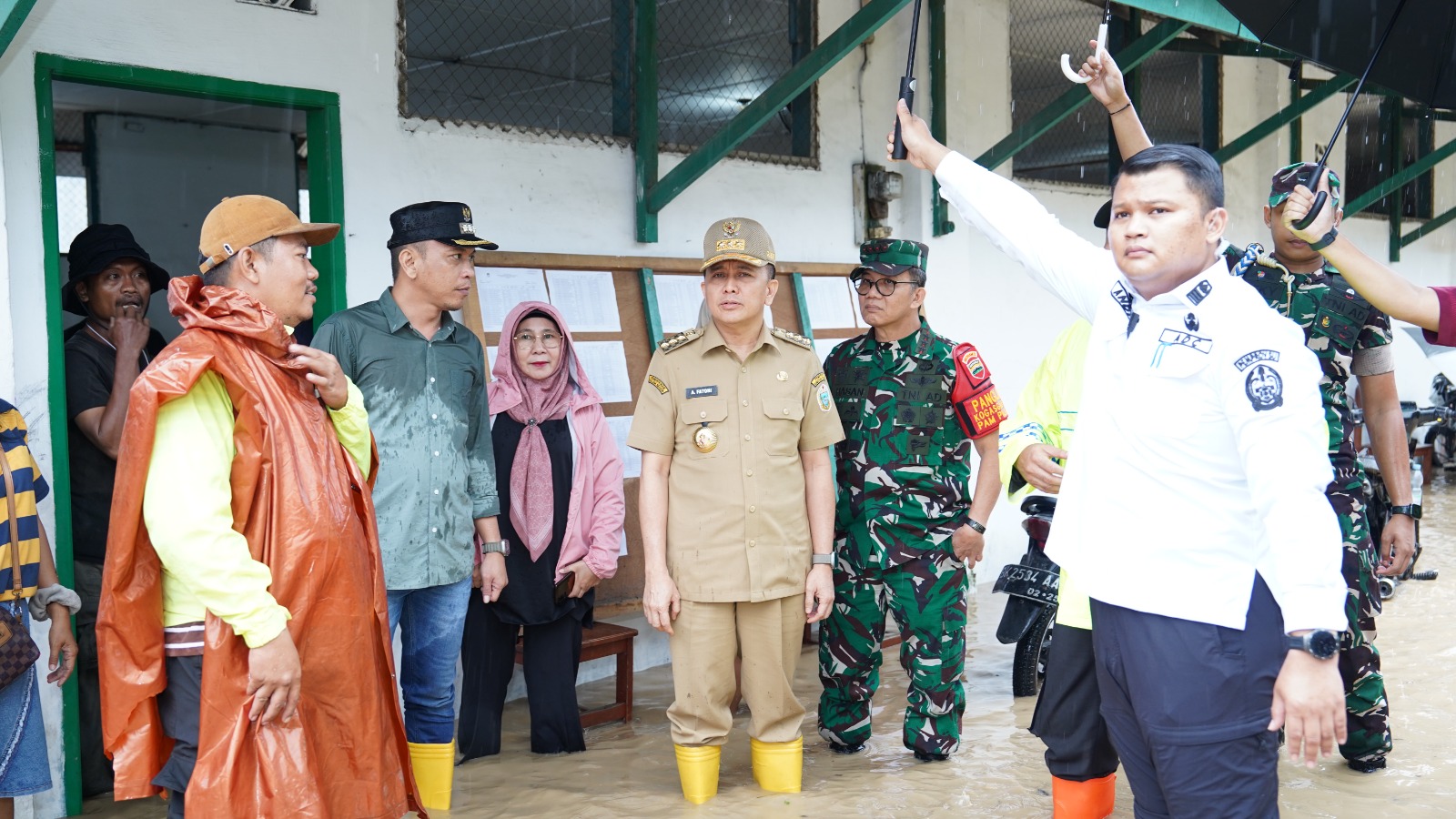 Di lokasi ini, rombongan melihat kondisi TPS yang terendam banjir, sejumlah rumah warga juga ikut terendam banjir dengan ketinggian air bervariasi.