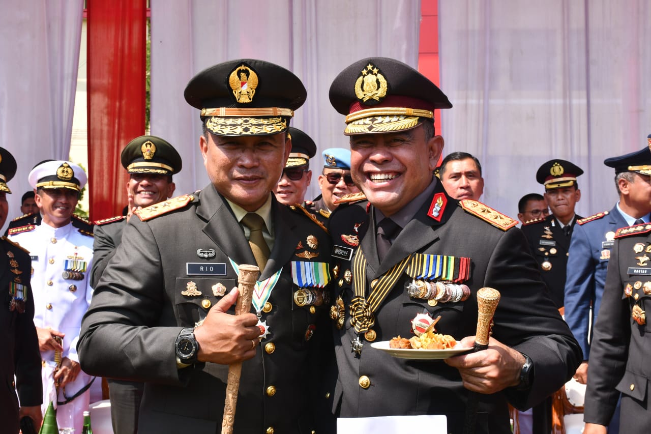 Kemeriahan dilanjutkan dengan pemotongan tumpeng dan penyajian kue tart ulang tahun sebagai ungkapan rasa syukur dan simbol kekompakan serta soliditas TNI-Polri dalam mengabdi kepada bangsa dan negara.