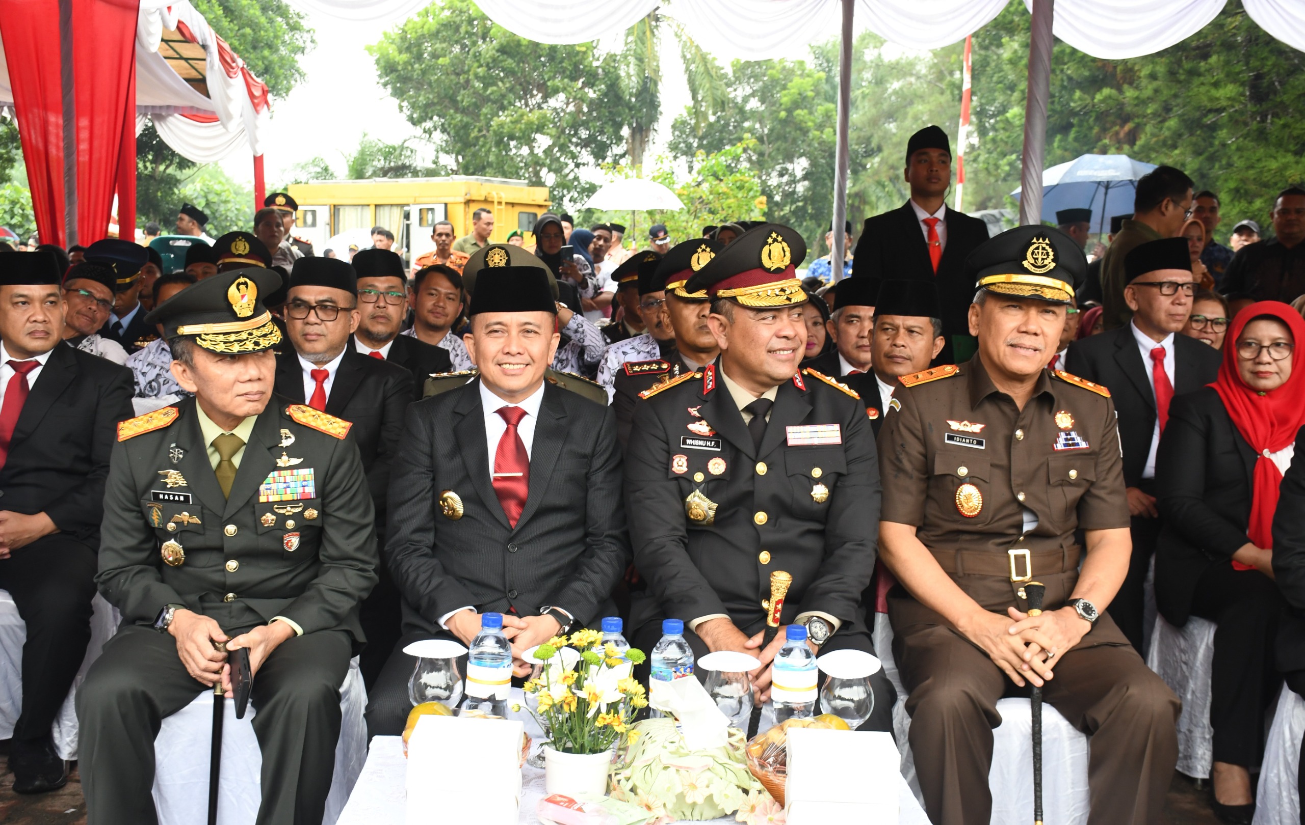 Hadir dari unsur Forkopimda, di antaranya Kapolda Sumut, Irjen Pol Whisnu Hermawan Februanto, Danlantamal I Belawan, Brigjen TNI (Mar) Jasiman Purba, Dankosek I Medan, Marsma TNI Toto Ginanto S, Kabinda Sumut, Brigjen TNl Gema Repelita, Kajati Sumut, Idianto, Ketua DPRD Sumut, Rahmaddian Shah, Kapoksahli Pangdam I/BB, Brigjen TNI David Hatigoran Hutagaol, Danlanud Suwondo, Kolonel Pnb Ucok Enrico Hutajulu, Danrem 022/PT, Kolonel Inf Tagor Rio Pasaribu, Danrindam I/BB, Kolonel Inf Abdul Razak Rangkuti, para PJU Kodam I/BB dan Polda Sumut, Plt Bupati Simalungun, H Zonni Waldi, serta tamu undangan lainnya.