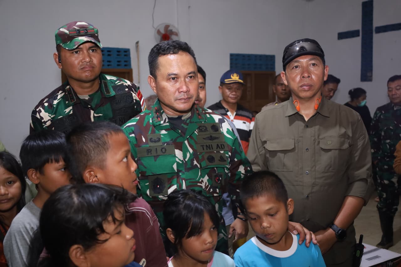 Usai pengecekan di titik longsor, Pangdam juga meninjau tempat penampungan pengungsi untuk memastikan kebutuhan dasar, layanan kesehatan, dan kenyamanan warga terpenuhi.