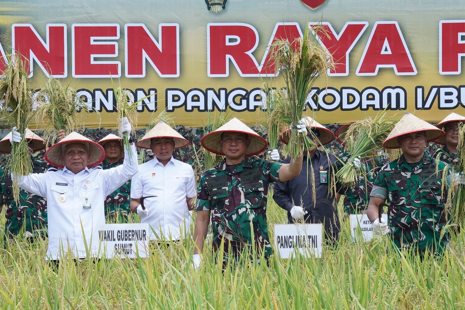 Panen Raya Kodam I/BB turut dihadiri Sekjen Kemhan RI, Staf Ahli Mentan RI, Kabaharkam Mabes Polri, Aslog Panglima TNI, Aster Panglima TNI dan Kapuspen TNI, unsur Forkopimda Sumut. Wagub Sumut, Kapolda Sumut, Kajati Sumut, Danlantamal I Belawan, Dankosek I Medan, Kabinda Sumut, Ketua DPRD Sumut, para Danrem dan jajaran PJU Kodam I/BB, para Bupati dan Wali kota se- Provinsi Sumut, serta instansi pemerintah, BUMN/BUMD dan tamu undangan lainnya.(Pendam I/BB).
