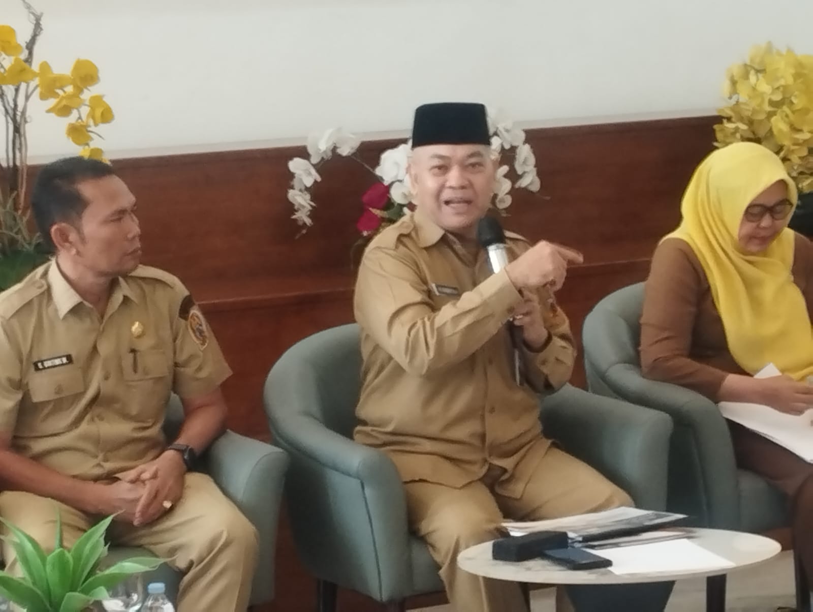 Kepala Dinas Sosial Sumut Asren Nasution (tengah) pada Konferensi Pers di Lobby Dekranasda, Kantor Gubernur Sumut.(Satunusantara news/Munawar).
