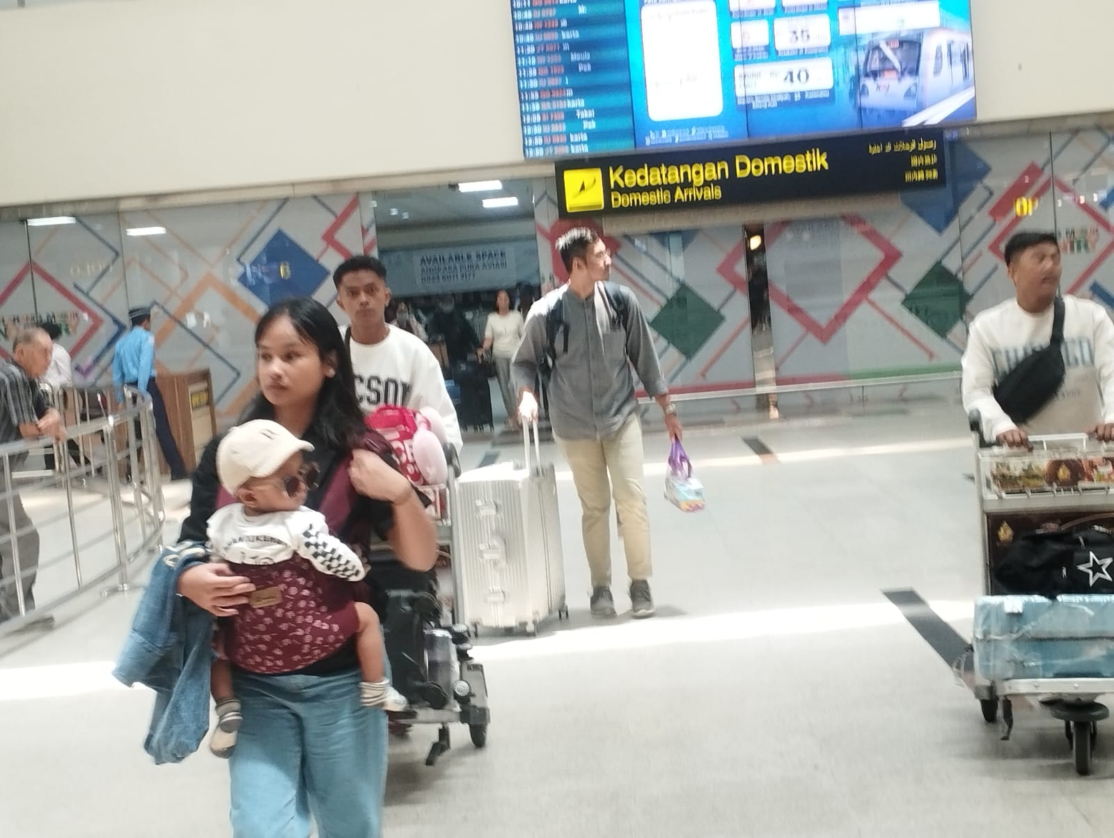 Penumpang pesawat H-4 Idul Fitri 1446 Hijriah di Bandara Internasional Kualanamu Kabupaten Deli Serdang.(Satunusantara news/Munawar).