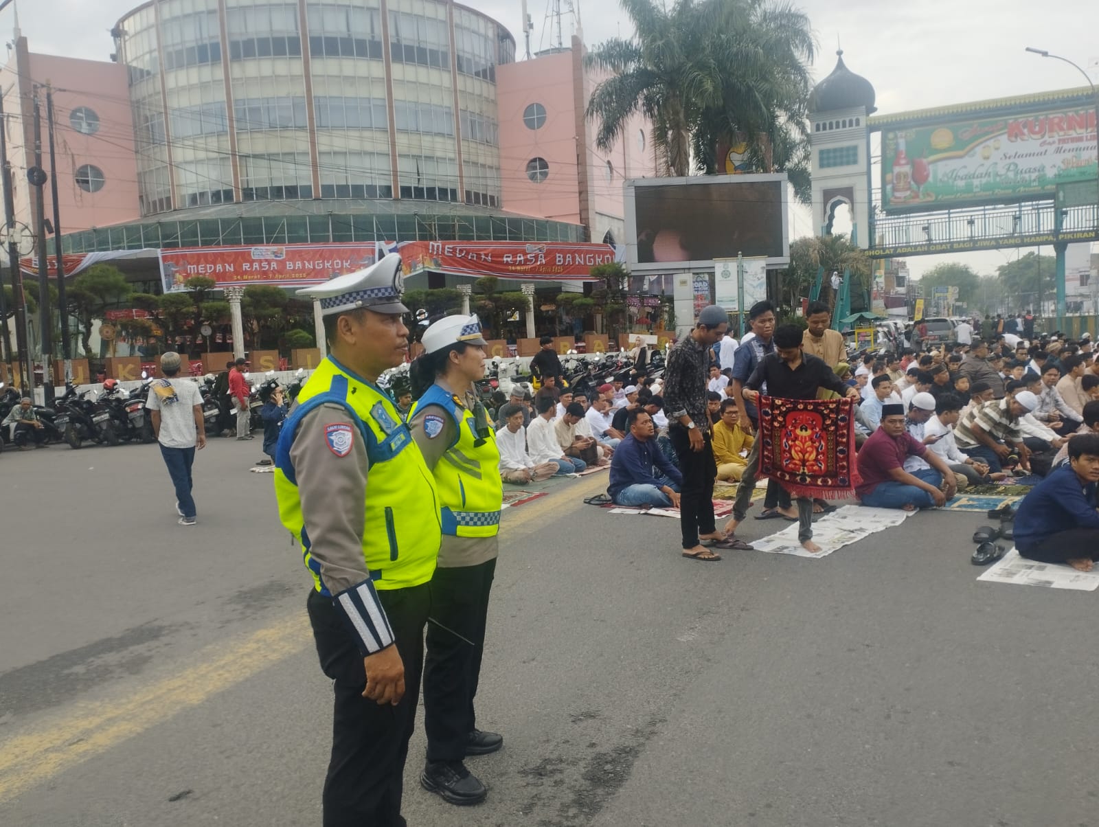 Pelaksanaan Shalat Id yang dilaksanakan di jalan raya itu, dalam kedaan aman dan lancar serta tidak ada ngangguan.