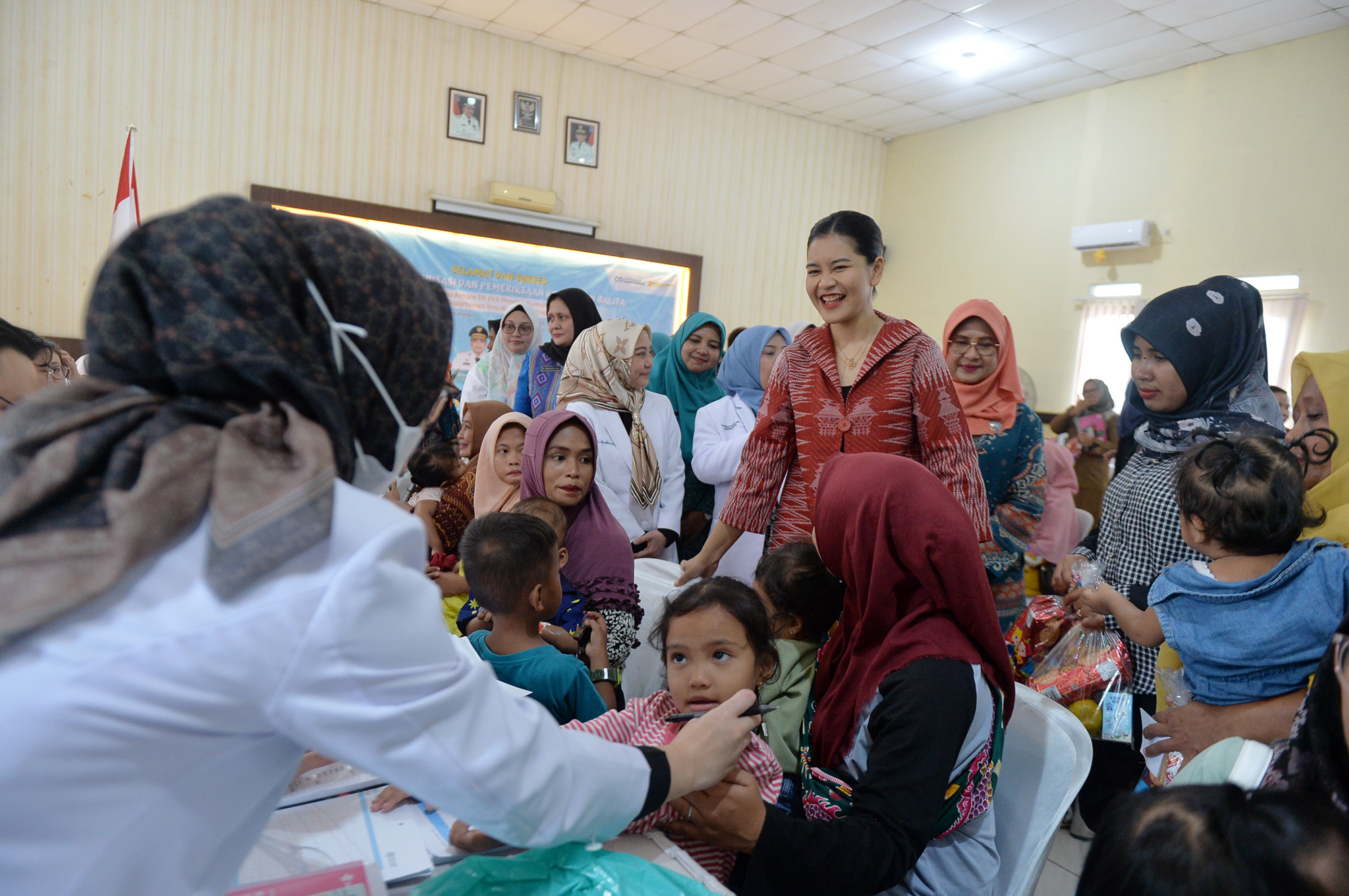Ketua TP PKK Sumut Kahiyang Ayu, meninjau langsung Imunisasi yang berlangsung di Aula Kantor Dinas Kesehatan Kota Binjai, Senin (6/10). Program ini menargetkan anak balita yang belum pernah menerima imunisasi dasar lengkap sebagai upaya mencegah penyakit menular berbahaya, seperti polio, campak, dan difteri.