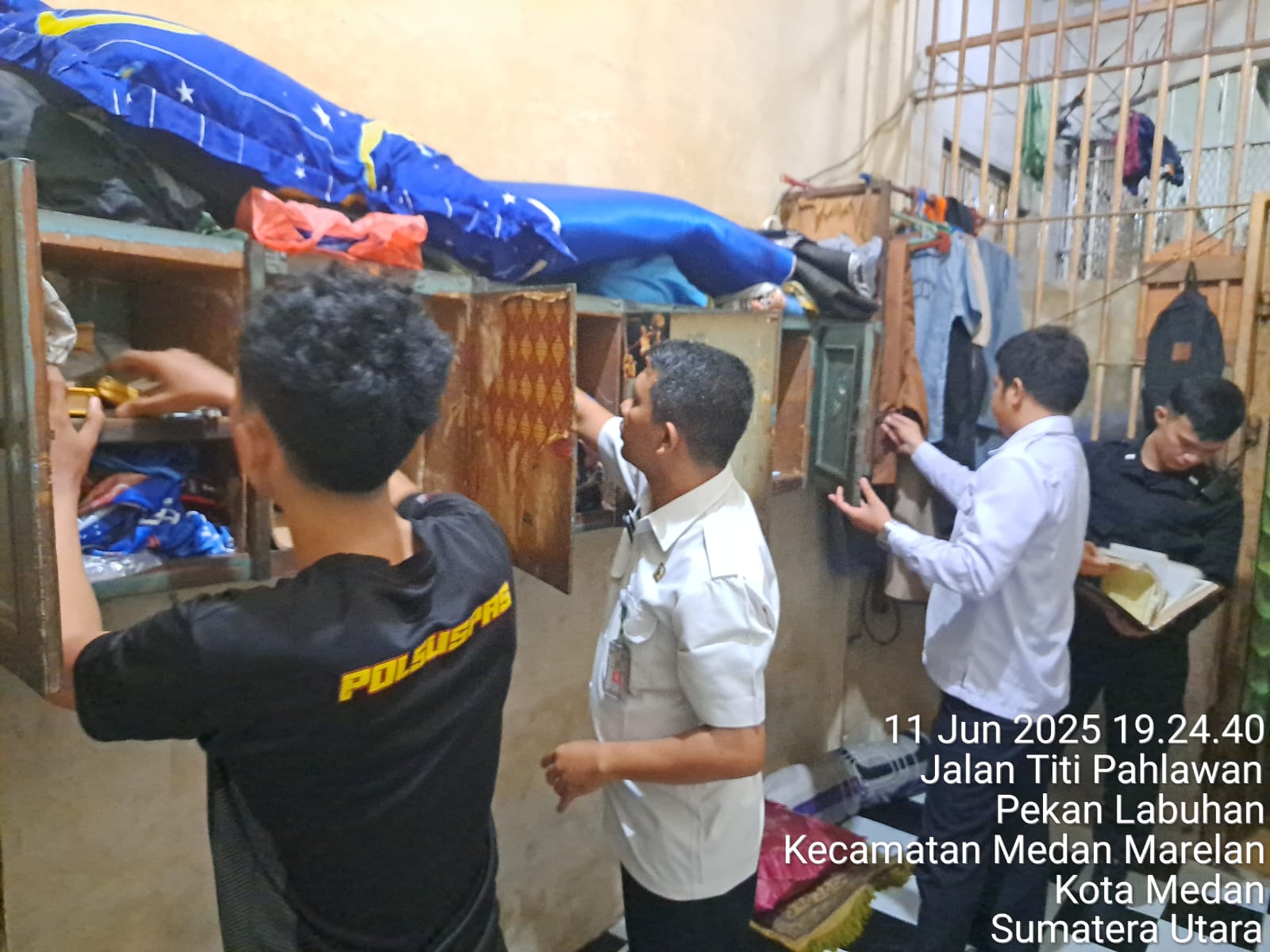 Labuhan Deli (Satu Nusantara News) – Kepala Pengamanan Rutan (KPR) Rumah Tahanan Negara (Rutan) Kelas I Labuhan Deli, Asrul Andriance Harahap, bersama Komandan Jaga dan seluruh Regu Jaga melaksanakan langsung penggeledehan pada kamar hunian warga binaan, Selasa malam (10/06).