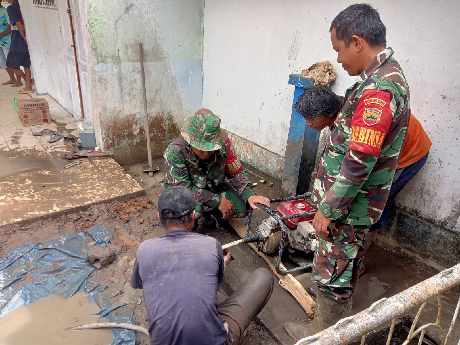 Personel Kodim 0211/Tapanuli Tengah, saat membuat sumur bor kedua   di lokasi pengungsian banjir SMA Negeri 1 Tukka, Kecamatan Tukka, Kabupaten Tapteng.(Satunusantara news/HO-Pendam I/BB).