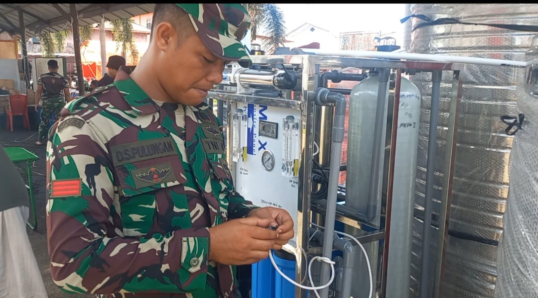 Tapanuli Tengah (Satu Nusantara News) – Satgas Penanggulangan Bencana Alam Kodam I/Bukit Barisan bersama Kementerian Pertahanan RI melaksanakan pemasangan alat penjernih air minum Reverse Osmosis (RO) di GOR Pandan, Kelurahan Pandan, Kecamatan Pandan, Kabupaten Tapanuli Tengah (Tapteng), Sumatera Utara.