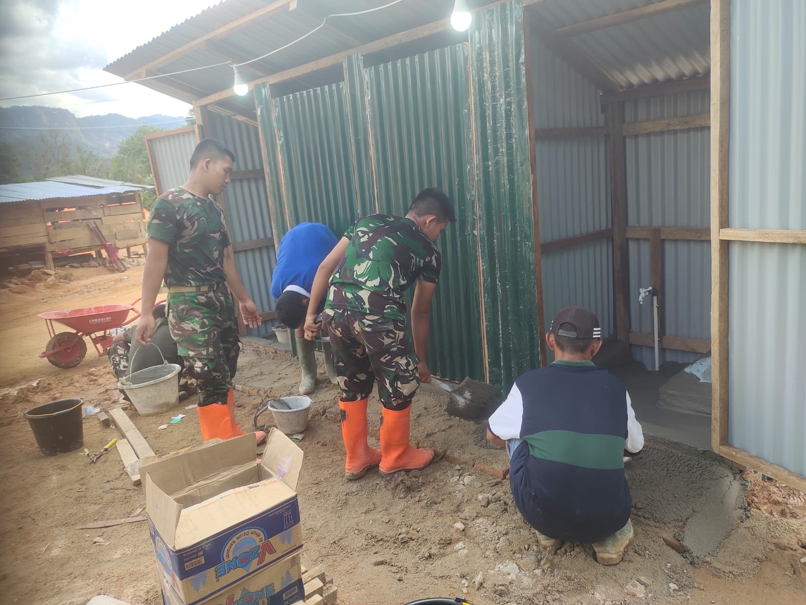 Tapanuli Tengah (Satu Nusantara News) – Satgas Penanggulangan Bencana Alam Kodim 0211/Tapanuli Tengah melalui Babinsa Koramil 03/Pandan dan personel Yon TP 905/TS menambah pembangunan fasilitas MCK di lokasi pengungsian Simpang Sipange, Kelurahan Tukka, Kecamatan Tukka, Kabupaten Tapanuli Tengah (Tapteng),Sumatera Utara, Kamis (8/1).