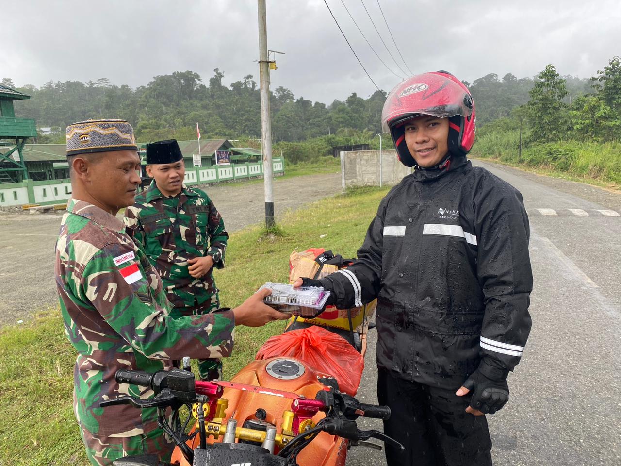 Salah seorang warga pengguna jalan yang melintas dan menerima takjil, Markus (39) mengungkapkan rasa bangganya kepada personel TNI Satgas Pamtas Yonif 122/TS Pos Kalipay yang masih melaksanakan pembagian takjil berupa makanan ringan kepada masyarakat dalam rangka bulan Suci Ramadhan 1445H.