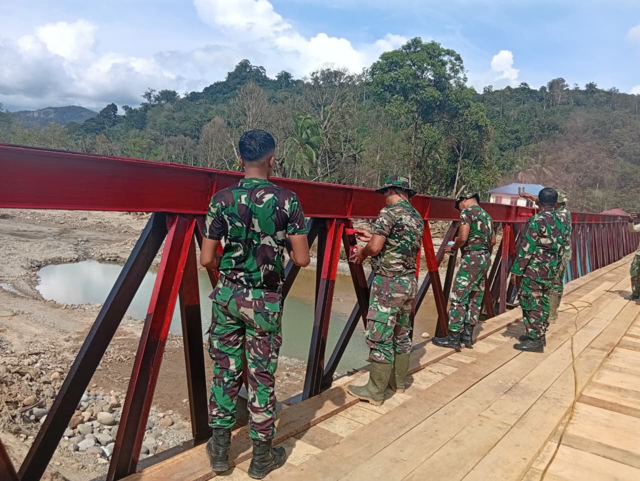 Jembatan tersebut sebelumnya mengalami akses jalan terputus akibat banjir bandang dan kini kembali dapat dimanfaatkan oleh masyarakat.