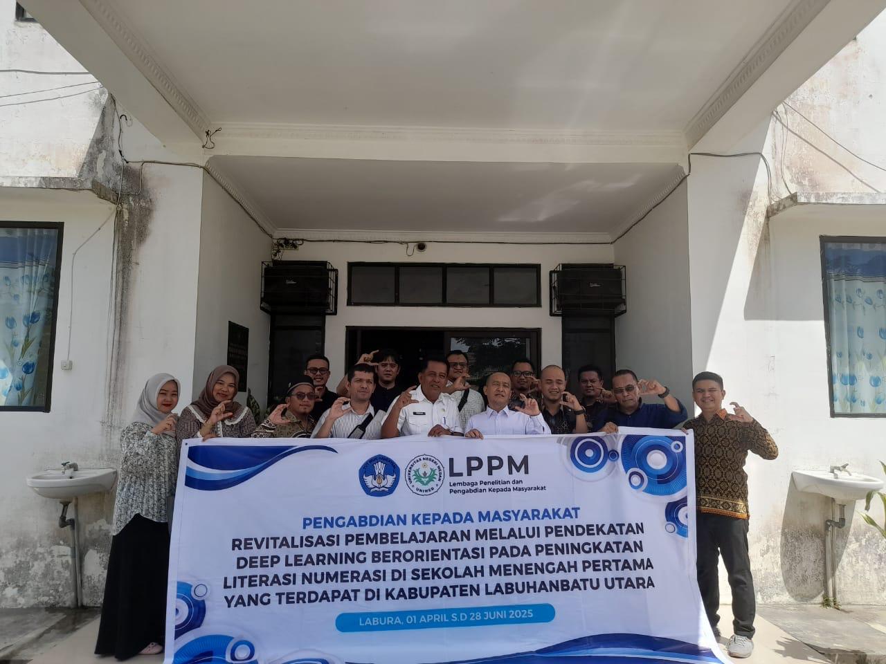 Program ini merupakan sebuah langkah strategis dalam peningkatan mutu pendidikan di Kabupaten Labuhanbatu Utara, melalui kegiatan Pengabdian kepada Masyarakat (PKM) bertajuk “Revitalisasi Pembelajaran melalui Pendekatan Deep Learning Berorientasi pada Peningkatan Literasi Numerasi di Sekolah Menengah Pertama”.Kegiatan ini menghadirkan para pakar intelektual dari Unimed, mulai dari profesor hingga doktor, yang terjun langsung ke lapangan guna membimbing dan menginspirasi guru-guru di daerah.