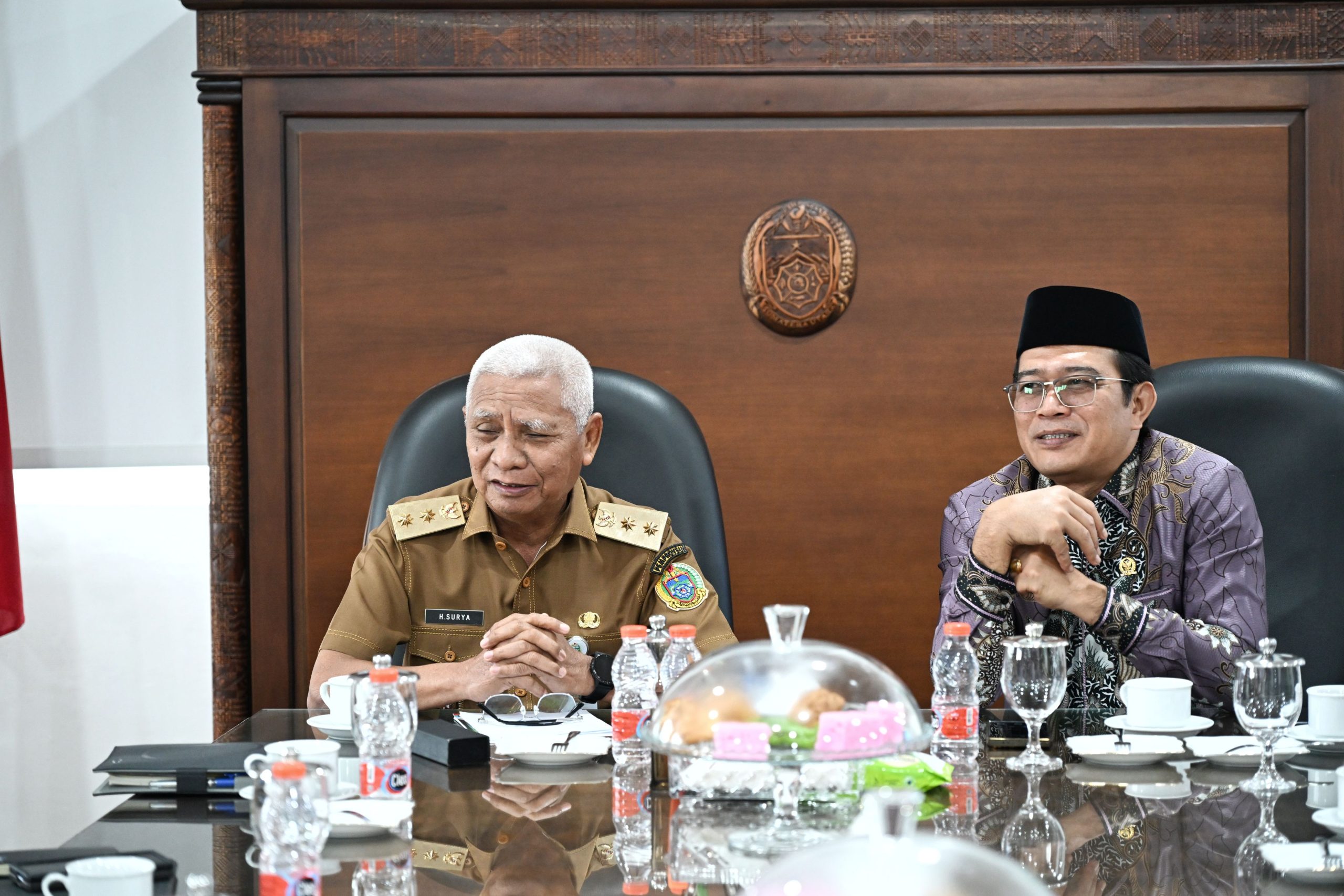 Medan (Satu Nusantara News) – Wakil Gubernur (Wagub) Sumatera Utara Surya menerima kunjungan Anggota DPD RI asal Sumut, Pdt Penrad Siagian, di ruangan kerjanya lantai 9 Kantor Gubernur Sumut, Selasa (10/06) dalam rangka Penyerapan Aspirasi terkait tiga Undang-Undang (UU) Pemerintahan Daerah, yakni UU Pelayanan Publik dan UU Aparatur Sipil Negara.