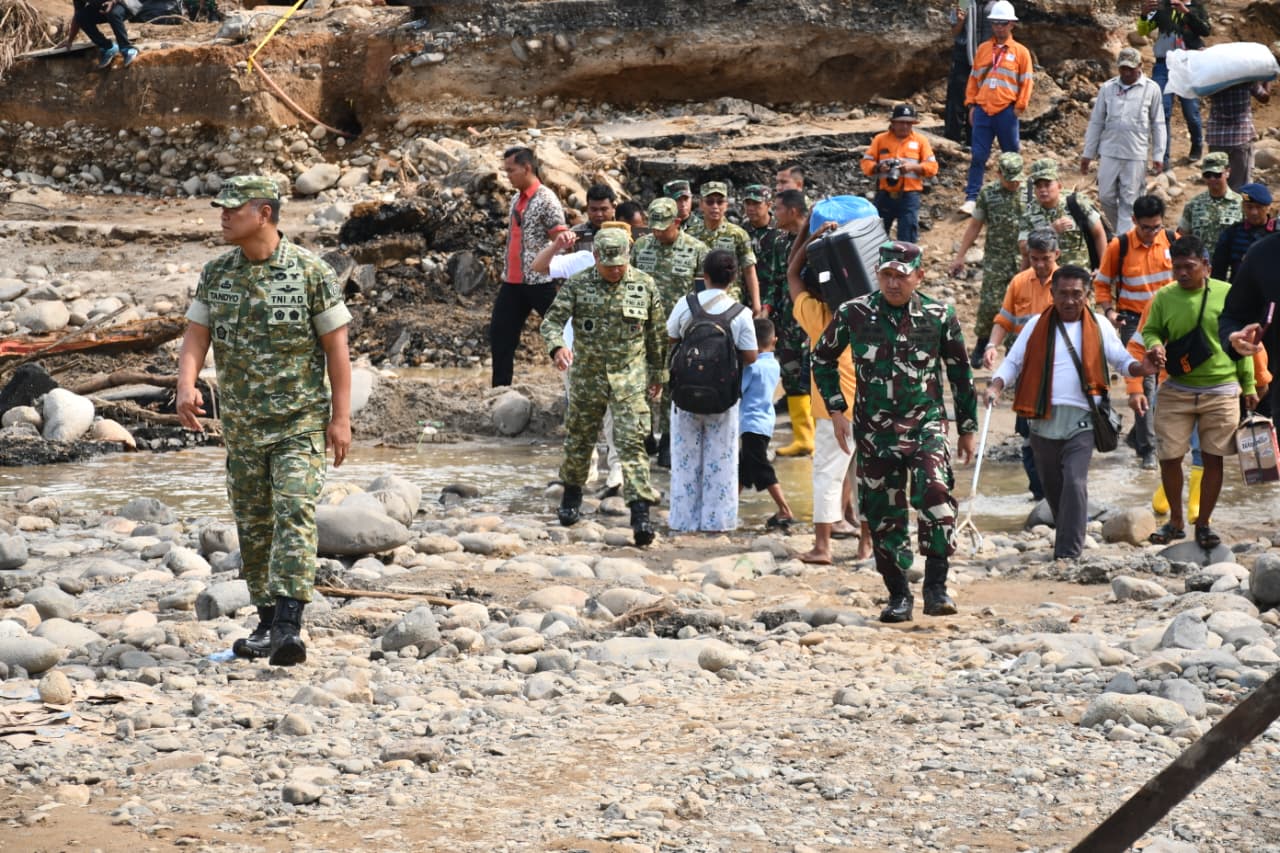 Tapanuli Selatan (Satu Nusantara News) – Wakil Panglima TNI Jenderal TNI Tandyo Budi Revita, didampingi Pangdam I/Bukit Barisan Mayjen TNI Rio Firdianto meninjau sejumlah titik terdampak banjir dan tanah longsor di Kabupaten Tapanuli Selatan, Sumatera Utara, Sabtu (06/12).